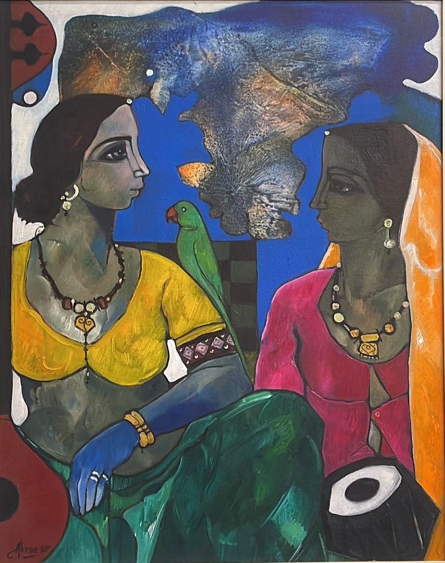 Viewing the art of Abrar, one shares the enormous enjoyment the artist obviously relishes in the changing moods of colours. A self taught artist in the tradition of Sadequain and Gulgee, Abrar freely delves into the romance of classical miniature painting, and fuses contemporary styles with stunning results. One discovers ethnic patterns, diverse textures and explosions of colours that are breath taking.