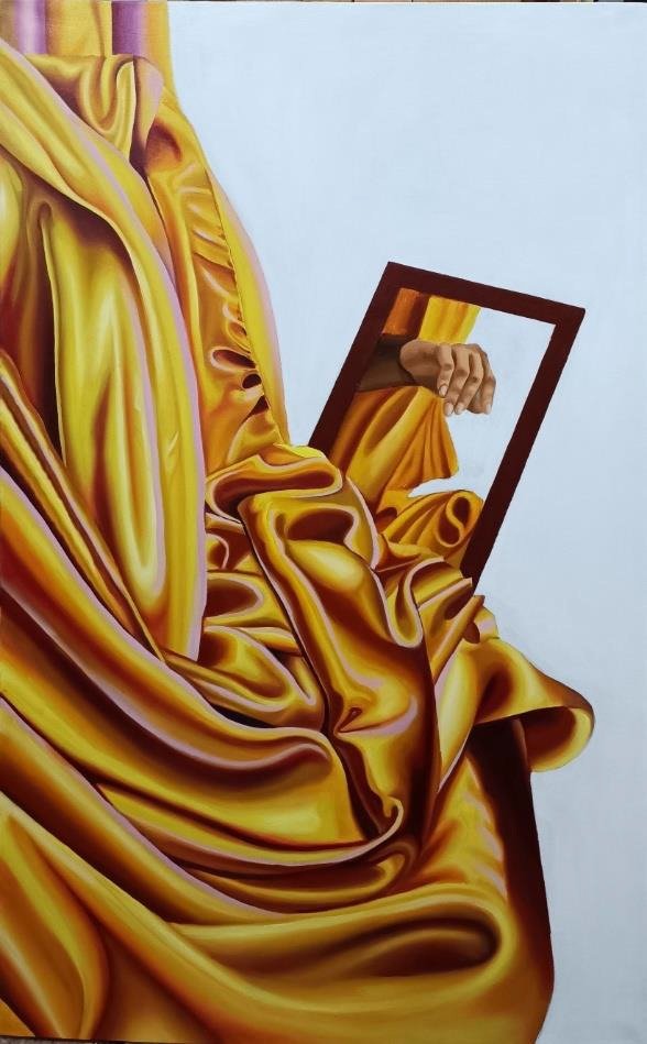 Kalsoom Iftikhar (b.1999, in Lahore, Pakistan) is a visual artist whose work explores the connotations and conclusions derived through a social lens within a South Asian context, of the relationship between drapery and the female body.