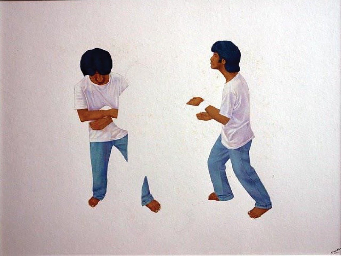 human body and details of objects around us. Trained as a miniature painter in the Department of Fine Art at National College of Arts, Shamsuddin