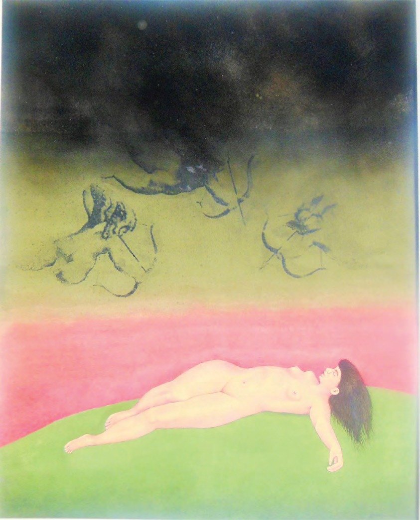 and nude women are painted along with faces and figures from traditional Indian miniature painting. In his work, a viewer encounters the profile of a