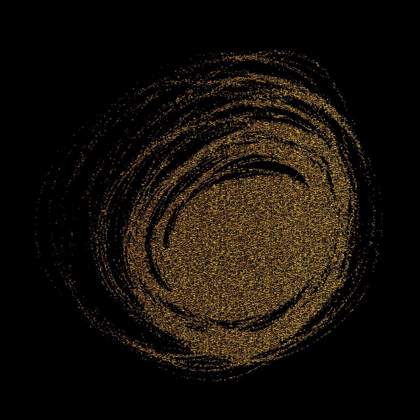 Gold leaf on black coated canvas glazed with transparent resin