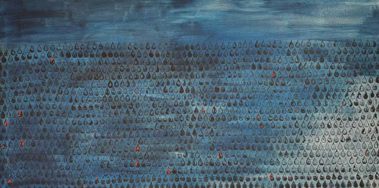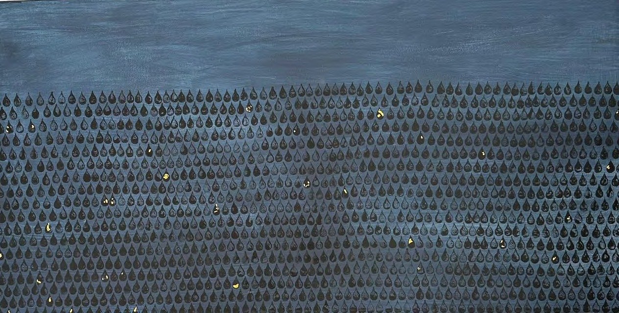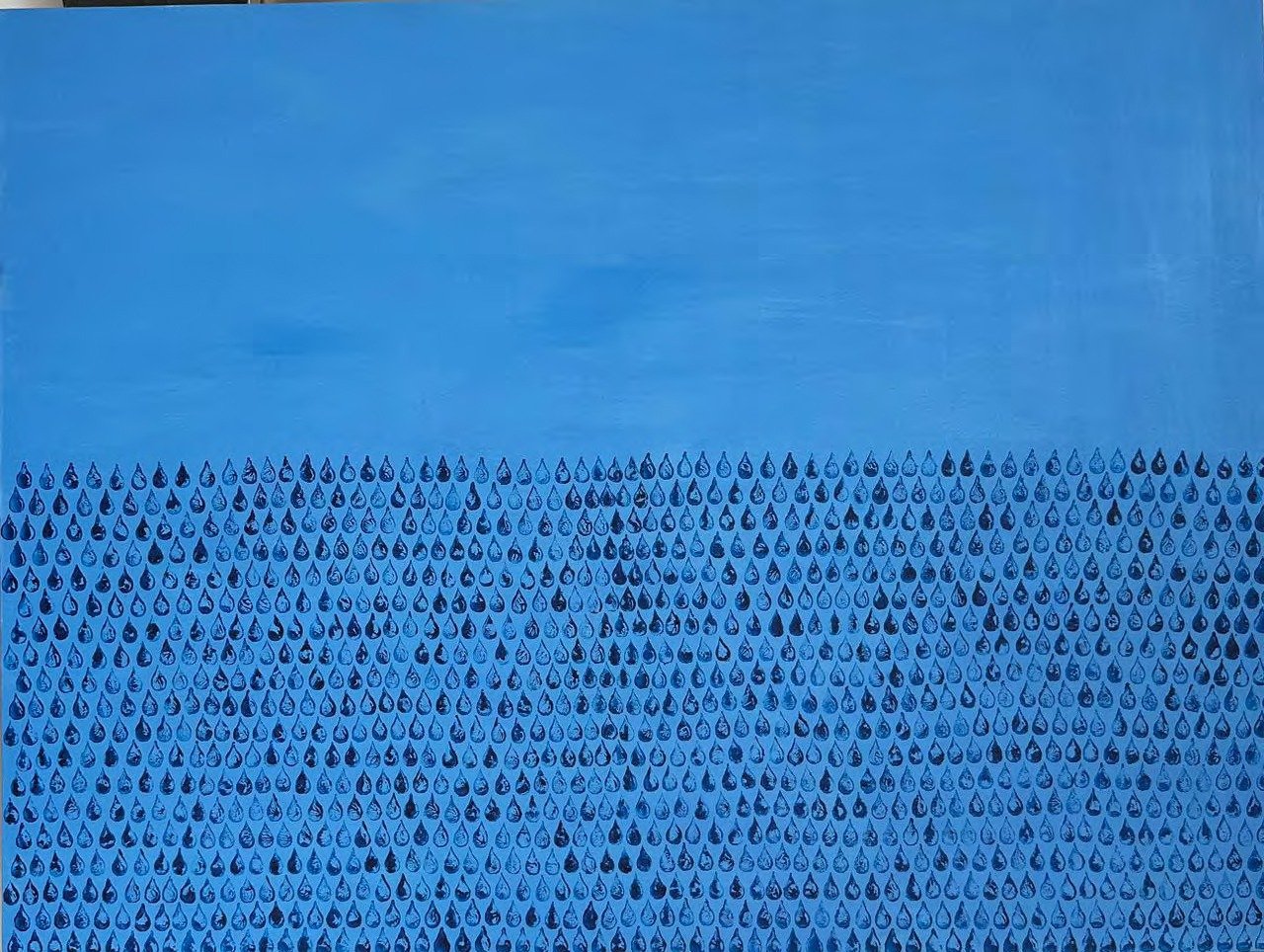 serenity, depth, and the vast expanse of the subconscious mind. Drops, delicately dispersed across the canvas, serve as metaphors for moments of