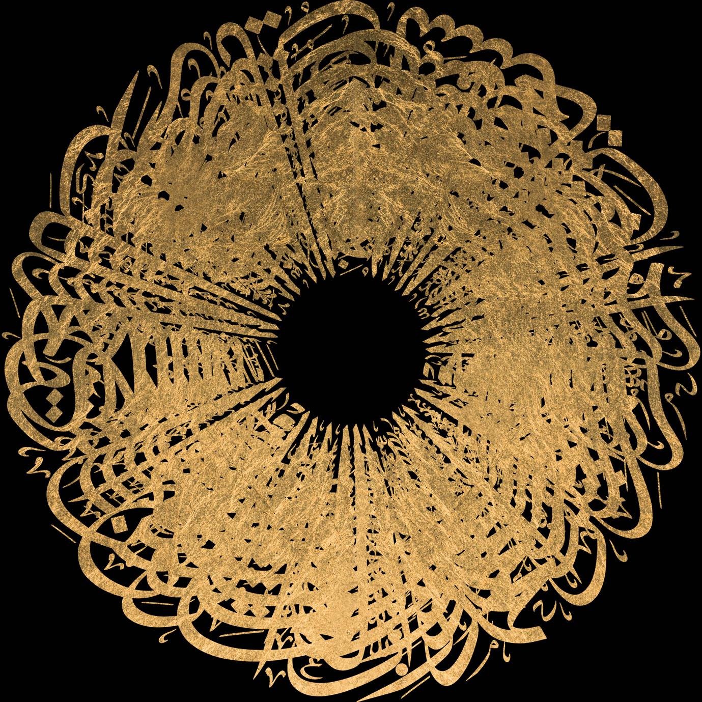 Gold leaf on black coated canvas glazed with transparent resin