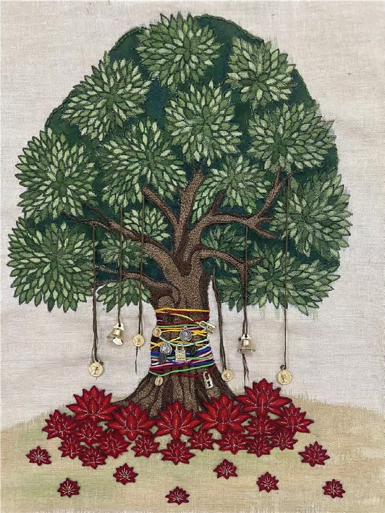 Acrylic Ink and Embriodery on Fabric