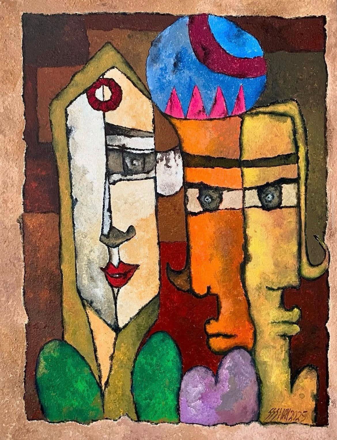 Syed Sagh Shah professionally known by his signature 55 Shah is a distingushind visual artist based in Karachi Bom in 231897. His creative Journey began in childhood, foried by an innate passion for travisloering thoughts into vivid imagery through cours and lines Saqib artistic signature lies in his profound fascination with Cubism Since his early years be has been captivated by the interplay of geometric shapes and the deconstruction of reality. Rather than presenting mbjects in a traditional hem he breaks thers down into natifaceted planes and angies offering the viewer a complex and engaging perspective that transcends the ordinary Drawing inspiration from the vibrant energy and urban complexitics of Karachi 55 Shah's work is a dakgre between classical techniques and contemporary sensibilities. His paintings are not mereds visual representations but eintional landicapes expressed through structured lomus and beild strokes