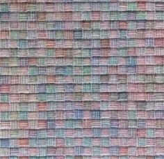 This image appears to be an example of abstract pattern art, and it is not possible to identify the exact artist just by looking at it. The design features a repetitive, textured pattern made up of small rectangular shapes arranged in horizontal layers, giving it a woven or mosaic-like appearance. Soft pastel colors such as pink, blue, and green are used throughout the artwork, creating a calm and visually pleasing effect. This type of artwork is commonly seen in modern digital design, textile patterns, and decorative backgrounds. It is often used for aesthetic purposes in websites, product designs, or wall art, making it a popular choice in contemporary visual design.